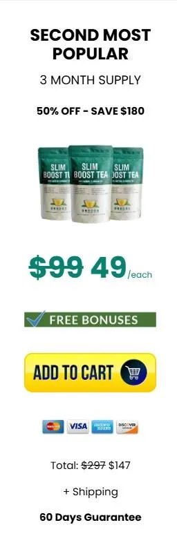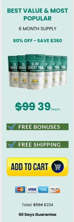 Slim Boost Tea is a weight management beverage designed to enhance metabolism and promote fat loss naturally. This tea combines 14 potent ingredients, including Costa Rican Green Tea, Wuyi Oolong Tea, and Kerala Garc1nia Cambog1a, synergistically suppressing the C-O-M-T enzyme, accelerating weight loss and improving overall health. Customers have reported significant weight reductions and increased energy levels, transforming their lifestyles.